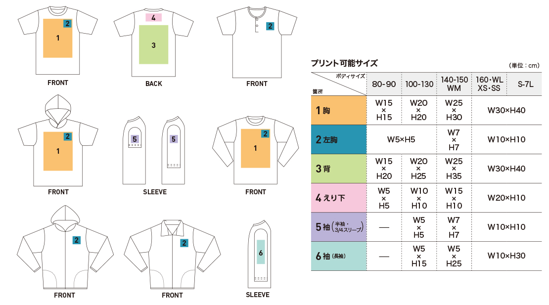 プリント可能位置はこちらをご参考にしてください