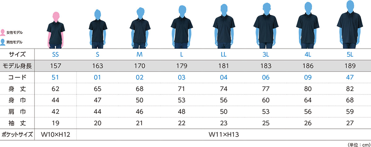 | サイズ | SS | S | M | L | LL | 3L | 4L | 5L |